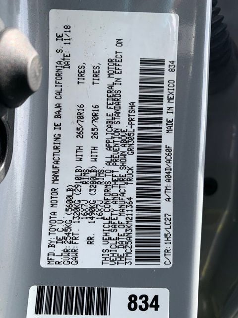 2019 Toyota Tacoma Cement TRD Off-Road V6 3.5L V6 PDI DOHC 24V LEV3-ULEV70 278hp