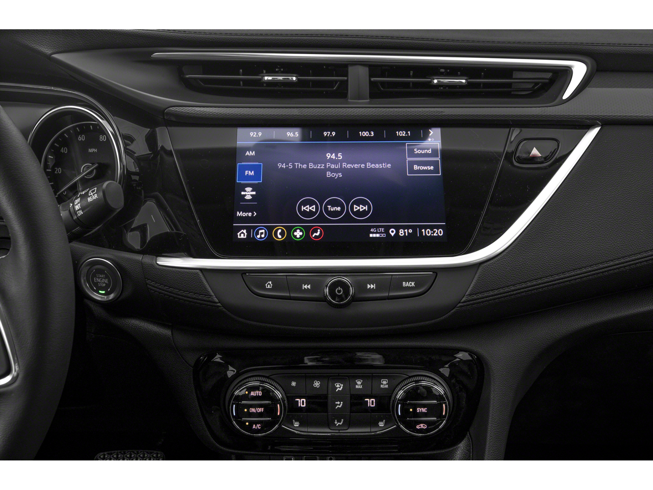 - Audio system, 8" diagonal Buick Infotainment System includes multi-touch display, AM/FM stereo, Bluetooth® streaming audio for music and most phones and Wireless Apple Carplay/Wireless Android Auto for compatible phones
