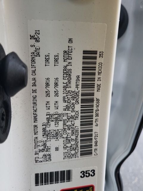 2021 Toyota Tacoma White TRD Off-Road V6 3.5L V6 PDI DOHC 24V LEV3-ULEV70 278hp