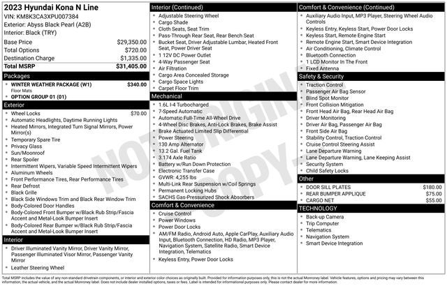 2023 Hyundai Kona Abyss Black Pearl N Line I4