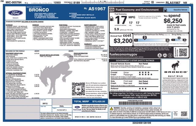 - Vehicle Name: Ford Bronco